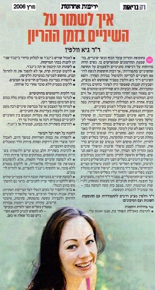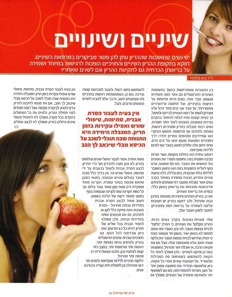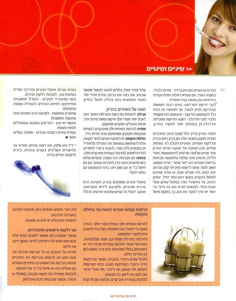מאמר זה התפרסם במוסף הבריאות של עיתון "ידיעות אחרונות" , במגזין "נולדים", ובאתרי אינטרנט רבים ביניהם: ynet doctors "ואללה" "רפואה" mamy academics.co.il articles.co.il infodoc www.e-dent.co.il,BEOK stips YOFI tooth, "תחושת בטן", בידיעון "אם המושבות" ובאתרים רבים נוספים.